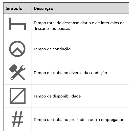 Os símbolos em uso na aplicação têm o seguinte significado: