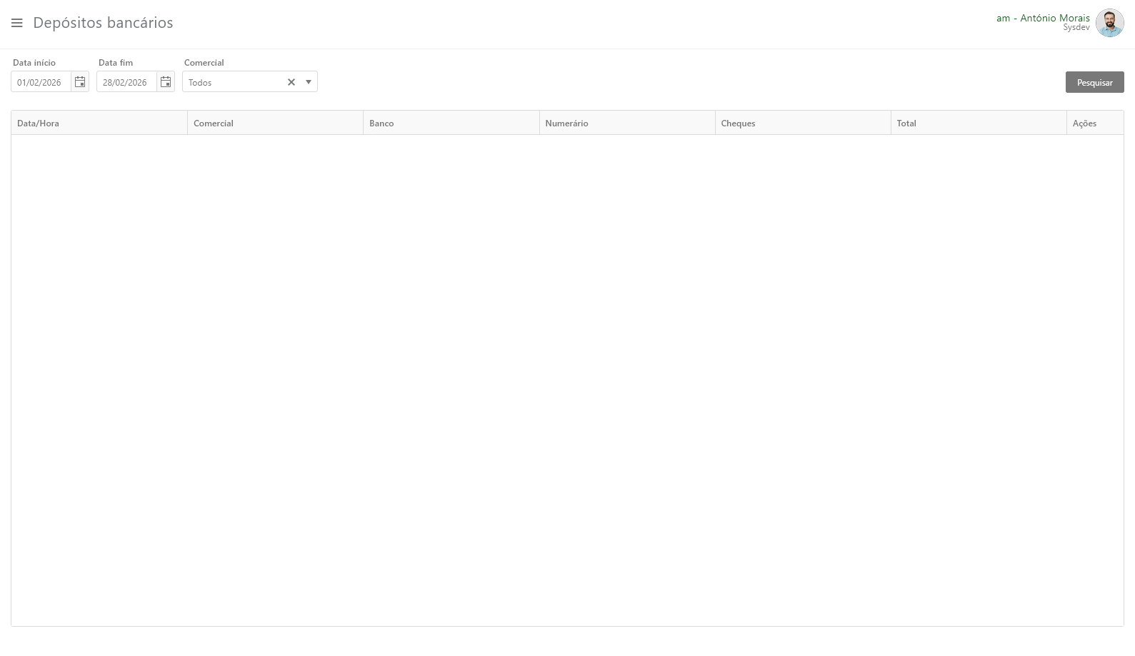 * **Data início** - Data de início da pesquisa por depósitos bancários