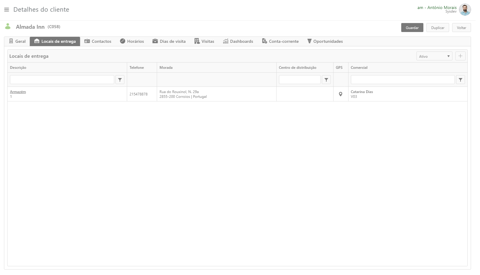 No separador Locais de entrega são criados, caso existam, os locais de entrega para a Entidade. Na criação dos locais de entrega, são requeridos dados como a morada, localidade, entre outros dados. De destacar que também é possível adicionar as coordenadas GPS do local de entrega, assim como a possibilidade de indicar dois horários preferenciais de visita nesse local de entrega.