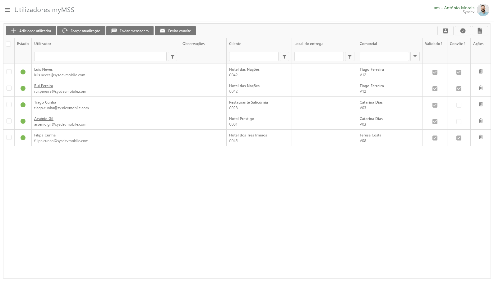 Nesta opção, após selecionar um ou mais do que um utilizador, o sistema reenvia configurações, lista de artigos e atualiza a conta-corrente na aplicação myMSS.