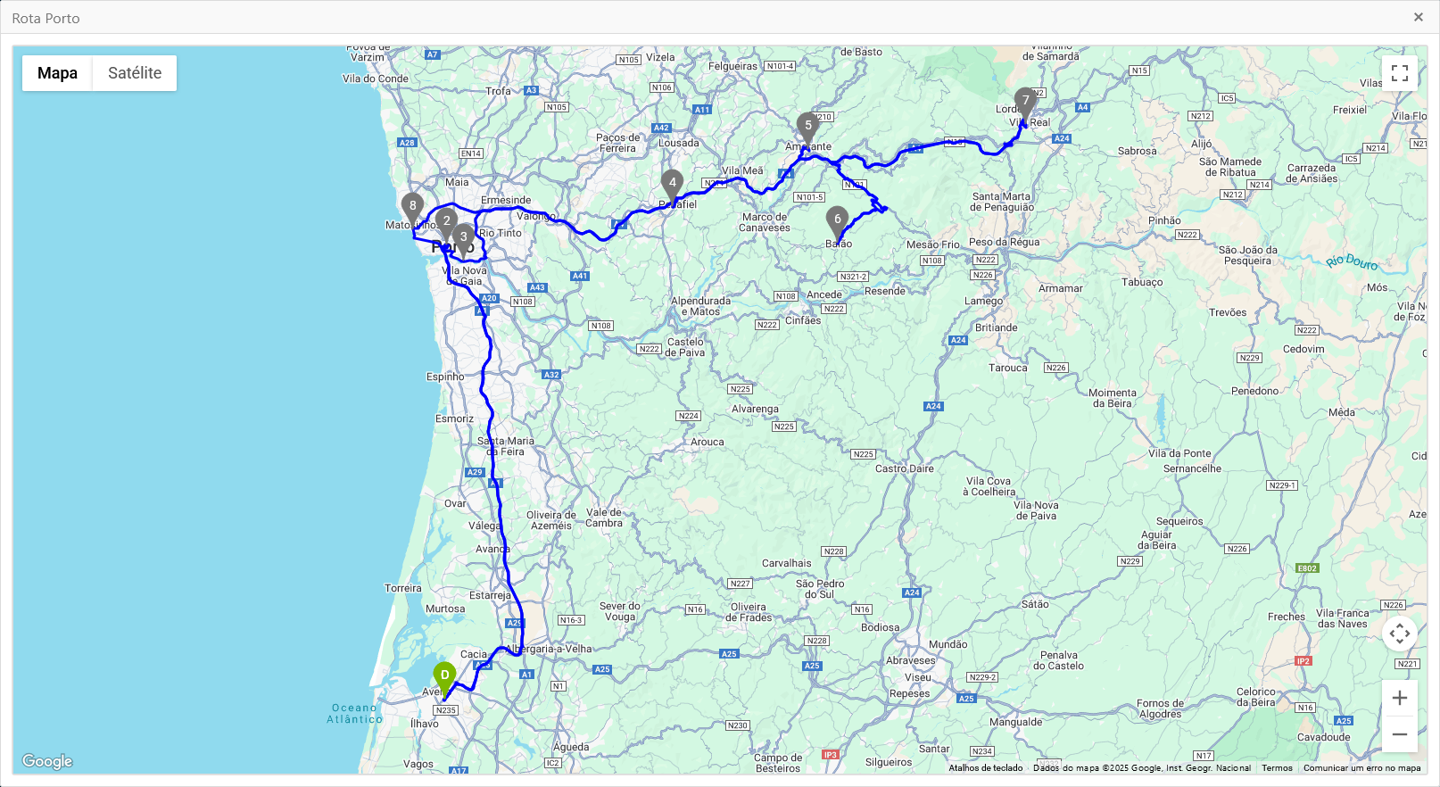 O percurso apresentado tem por base a ordenação das Entidades que foi definida pelo utilizador na criação/edição da rota.